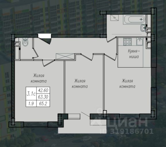 Общая площадь65,5 м2