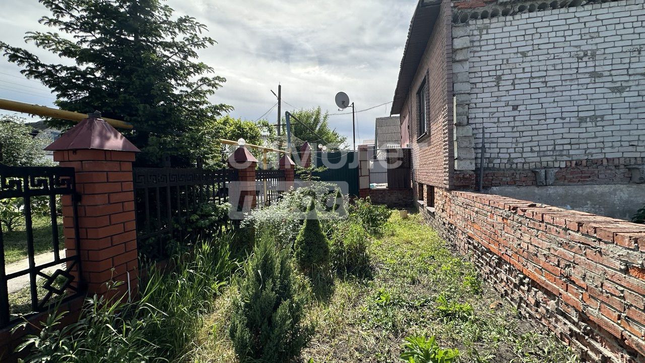 Фундамент -железобетон ширина 0,7 метра,высота 2,5 метра ,стены :красный кирпич + облицовочный, крыша - шифер, свет ,газ, отопление - газ,дрова,перекрытия -плита , забор -облицовочный кирпич,водопровод центральный ,канализация-яма.