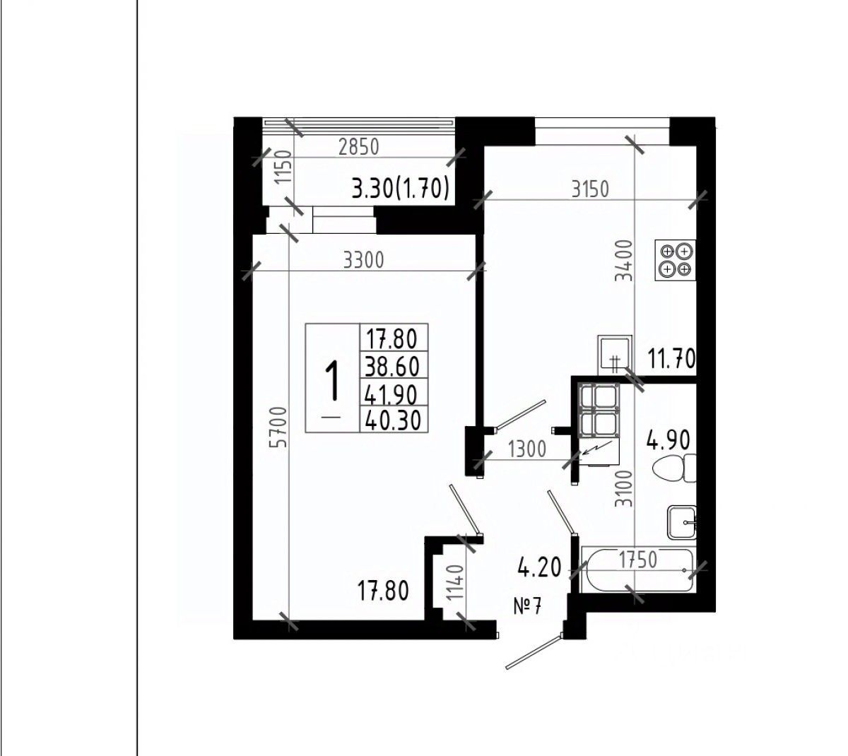 Предлагаем Вашему вниманию один из вариантов планировочных решений - классическая однокомнатная квартира, расположенная на 7 этаже жилого дома комплекса ЖК НОВАЯ ВЫСОТА.