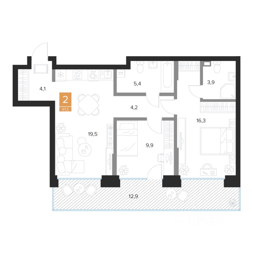 Продаётся 2-комнатная квартира в строящемся доме (2 очередь (2 этап)), срок сдачи: III-кв. 2027, общей площадью 67.2 кв.м., на 1 этаже. Новый жилой комплекс ''Парковый квартал ''Чувства'' от ГК ''Мармакс'' расположен по адресу: г. Курск, ул. Бойцов 9-ой Дивизии