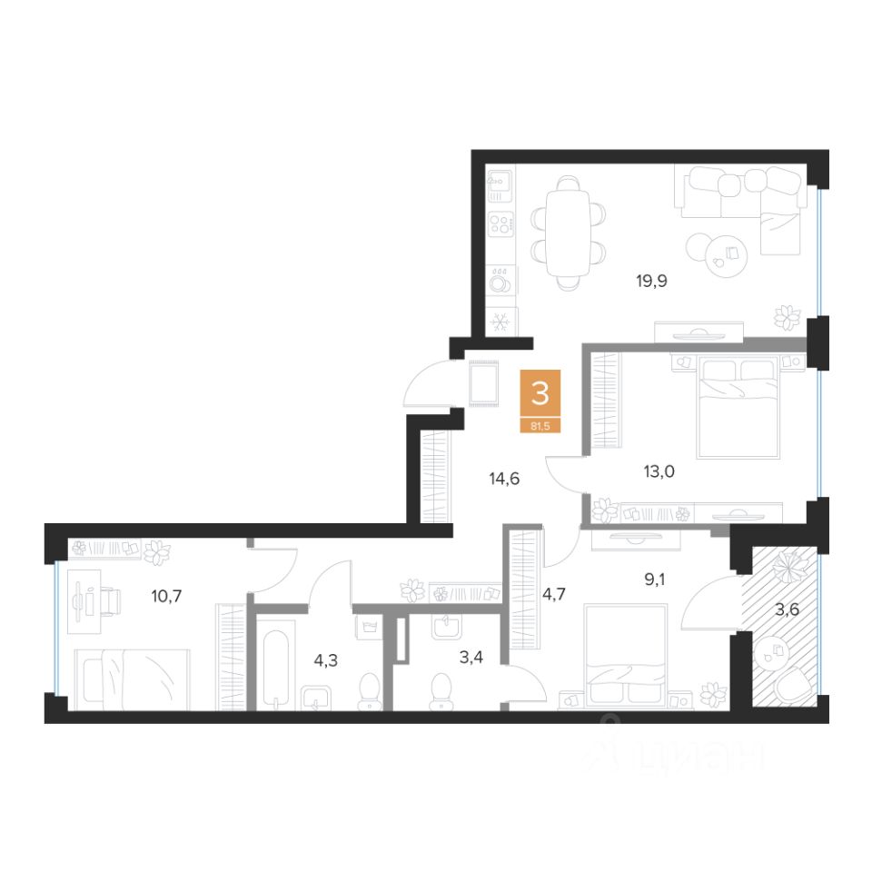 Продаётся 3-комнатная квартира в строящемся доме (2 очередь (2 этап)), срок сдачи: III-кв. 2027, общей площадью 81.5 кв.м., на 4 этаже. Новый жилой комплекс ''Парковый квартал ''Чувства'' от ГК ''Мармакс'' расположен по адресу: г. Курск, ул. Бойцов 9-ой Дивизии