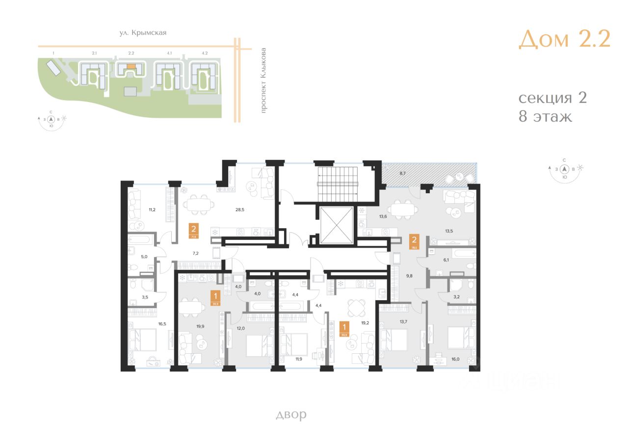 Продаётся 2-комнатная квартира в строящемся доме (2 очередь (2 этап)), срок сдачи: III-кв. 2027, общей площадью 78.5 кв.м., на 8 этаже. Новый жилой комплекс ''Парковый квартал ''Чувства'' от ГК ''Мармакс'' расположен по адресу: г. Курск, ул. Бойцов 9-ой Дивизии