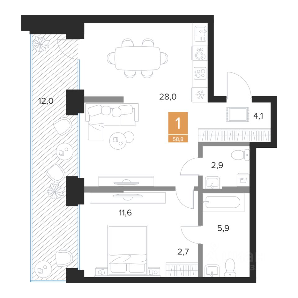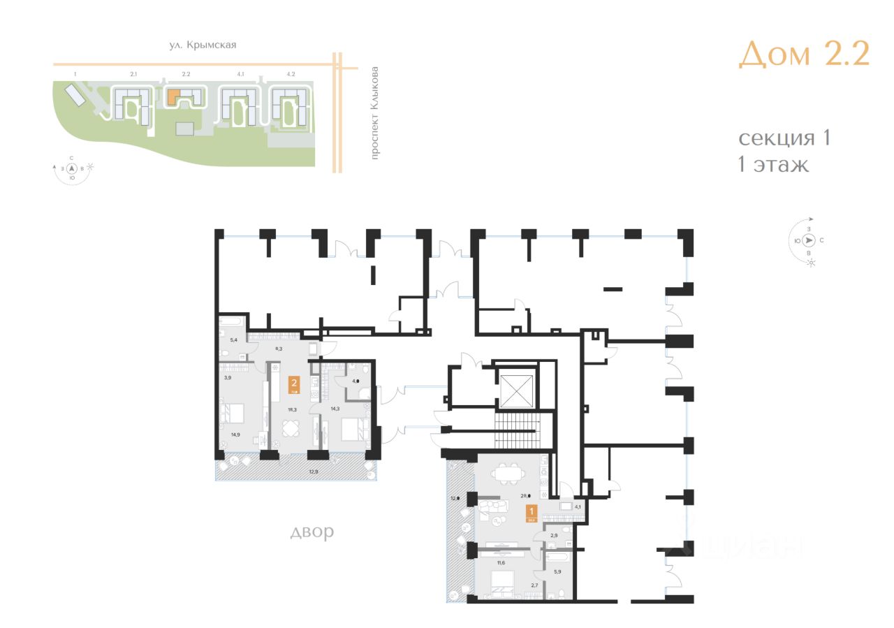 Продаётся 1-комнатная квартира в строящемся доме (2 очередь (2 этап)), срок сдачи: III-кв. 2027, общей площадью 58.8 кв.м., на 1 этаже. Новый жилой комплекс ''Парковый квартал ''Чувства'' от ГК ''Мармакс'' расположен по адресу: г. Курск, ул. Бойцов 9-ой Дивизии