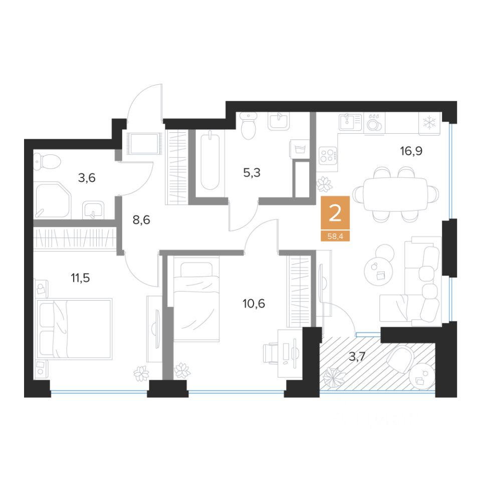 Продаётся 2-комнатная квартира в строящемся доме (2 очередь (2 этап)), срок сдачи: III-кв. 2027, общей площадью 58.4 кв.м., на 9 этаже. Новый жилой комплекс ''Парковый квартал ''Чувства'' от ГК ''Мармакс'' расположен по адресу: г. Курск, ул. Бойцов 9-ой Дивизии