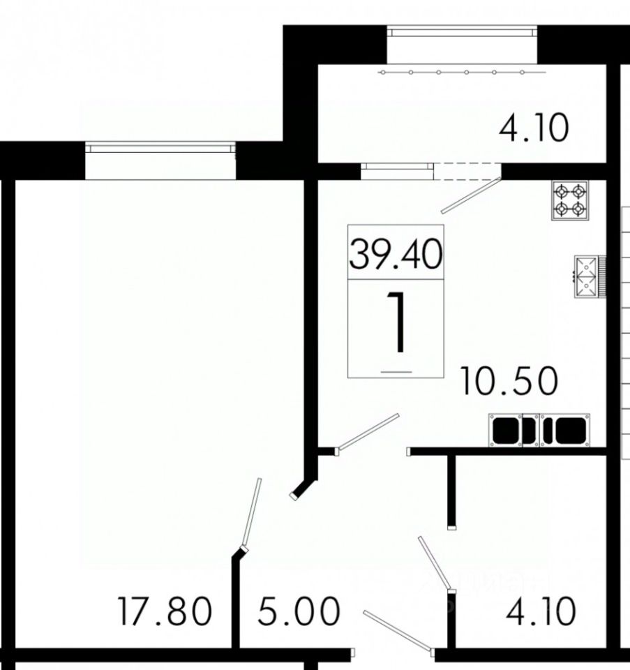 Общая площадь39,3 м2