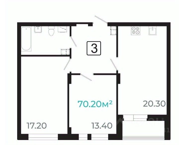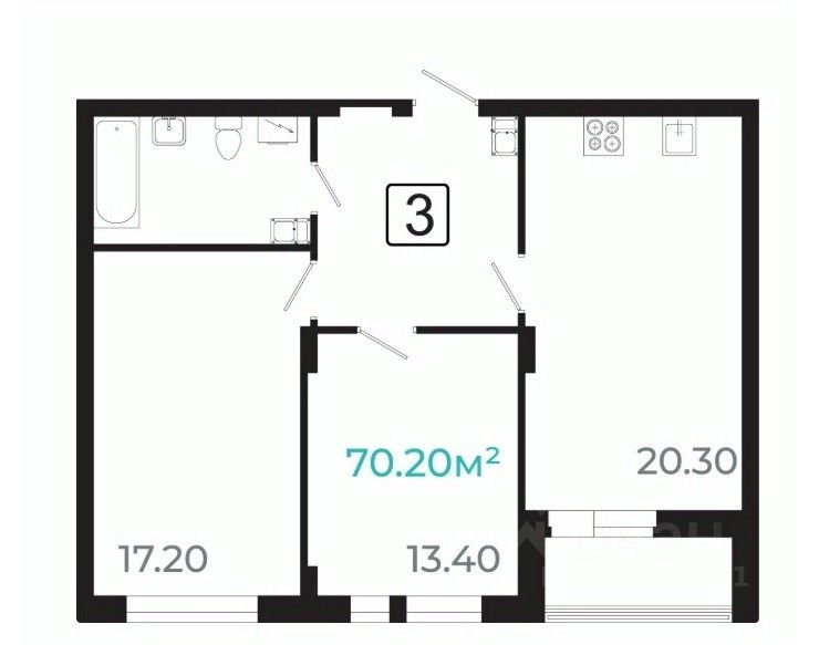 Общая площадь68,2 м2