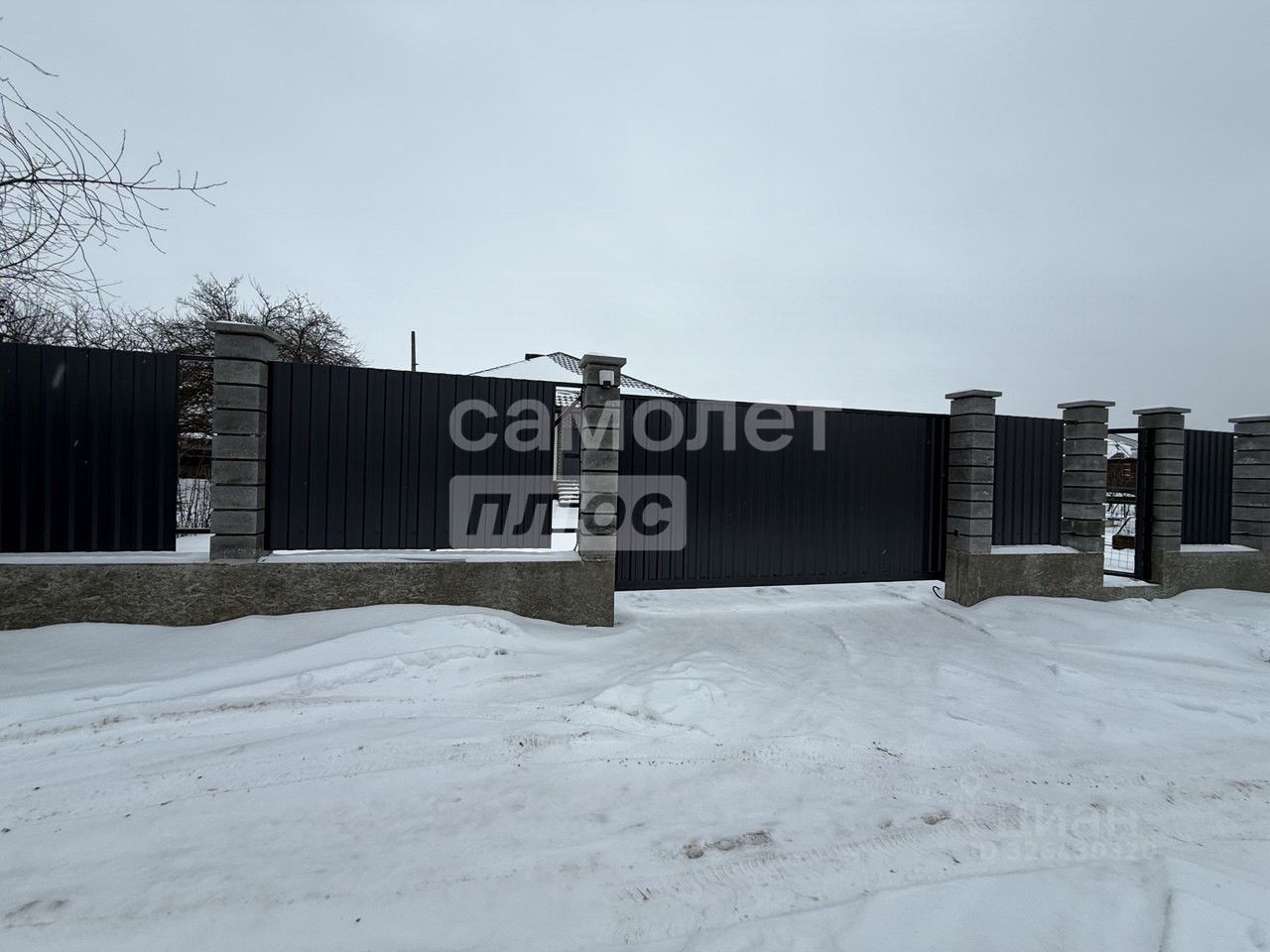 На территории построен новый гараж, вся территория огорожена, современные ворота для въезда автомобиля, двор бетон.