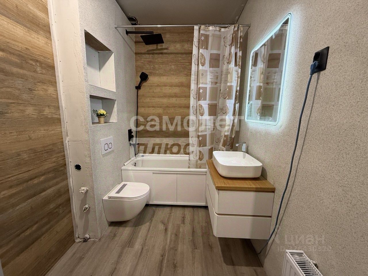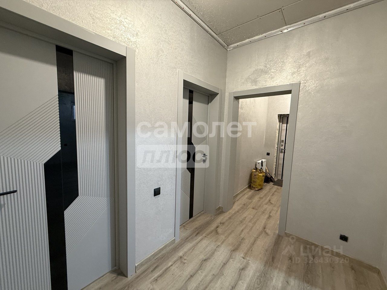 Отделка: Внутренние стены — декоративная штукатурка. Натяжные потолки. На полу уложен кварц-винил(тактильно приятный и износостойкий материал)
