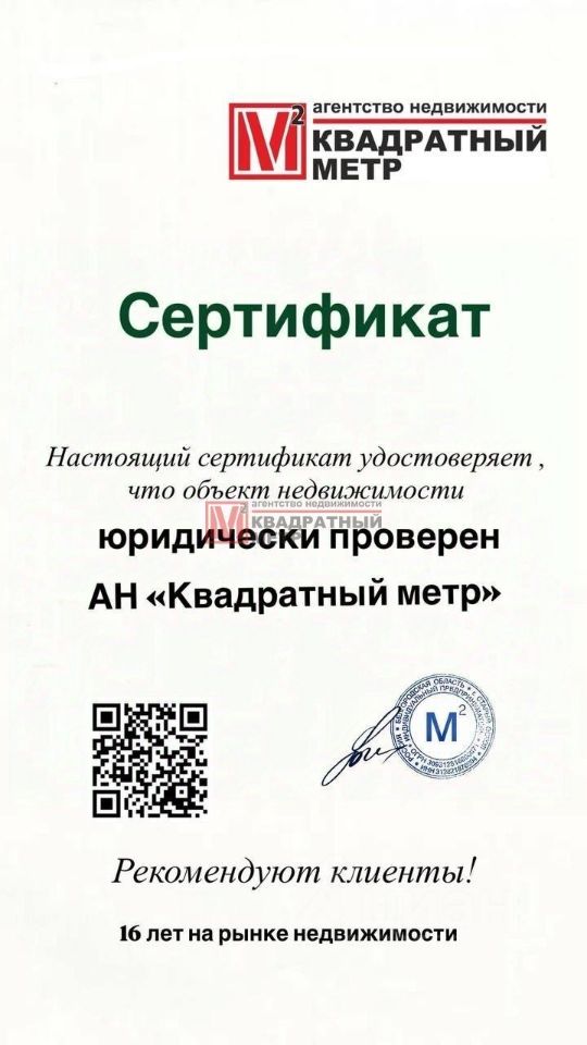 АН ''Квадратный метр''- ваш надежный партнер! Работаем честно и прозрачно 16 лет на рынке недвижимости! Поможем в одобрении ипотеки!
