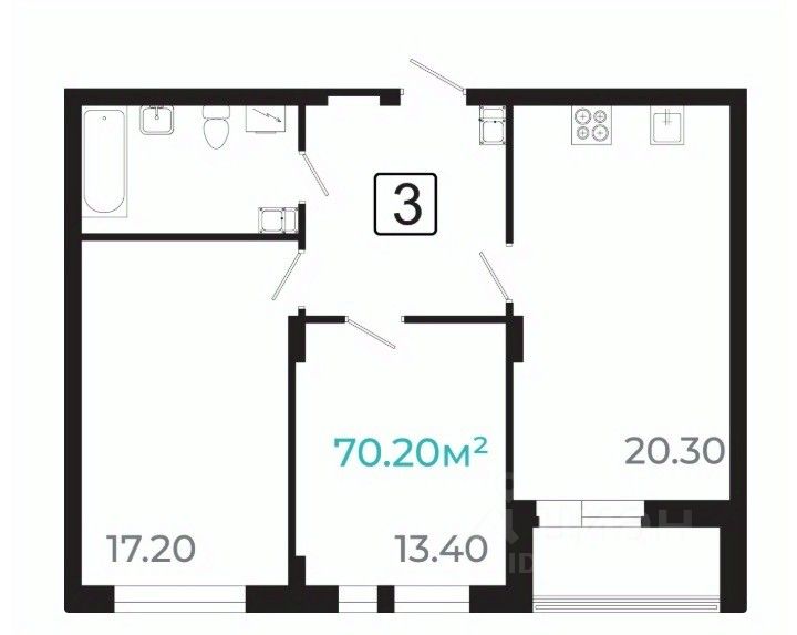 Общая площадь68,3 м2