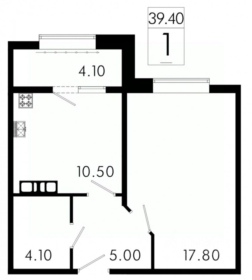 Общая площадь39,4 м2